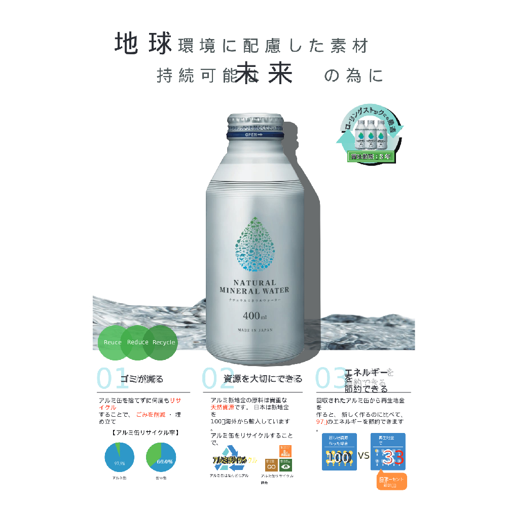 ラベルをはがさずリサイクル可能なアルミニウム缶を採用。
