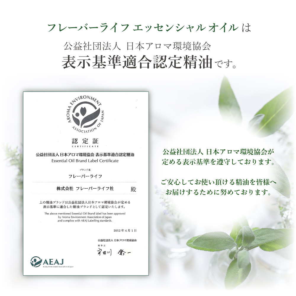 ・公益社団法人日本アロマ環境協会表示基準適合認定精油