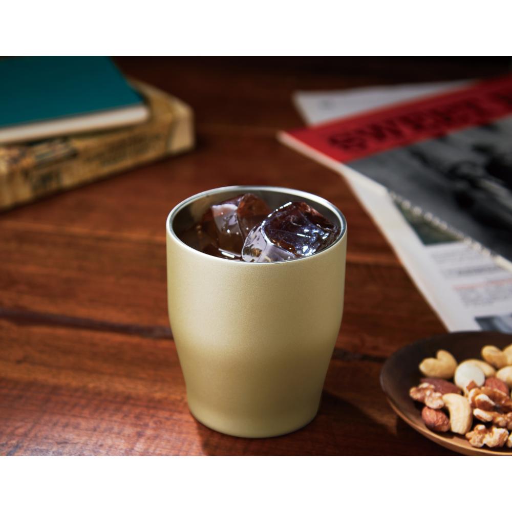 真空二重構造で保温・保冷に優れたタンブラー。上品で高級感のあるシャンパンゴールドも人気のポイントです。口径が広いため、大きな氷も楽々投入可能。