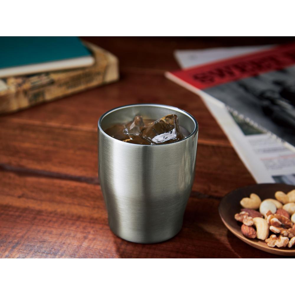 真空二重構造で保温・保冷に優れたタンブラー。上品で高級感のあるシャンパンゴールドも人気のポイントです。口径が広いため、大きな氷も楽々投入可能。